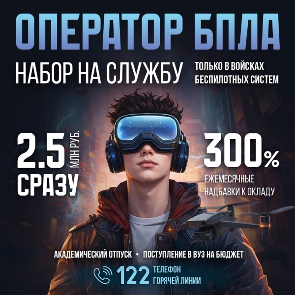 Заключите контракт с Министерством обороны и войдите в состав войск беспилотных систем! Узнать подробности можно по телефону 122.